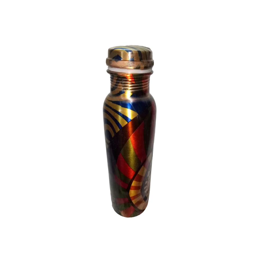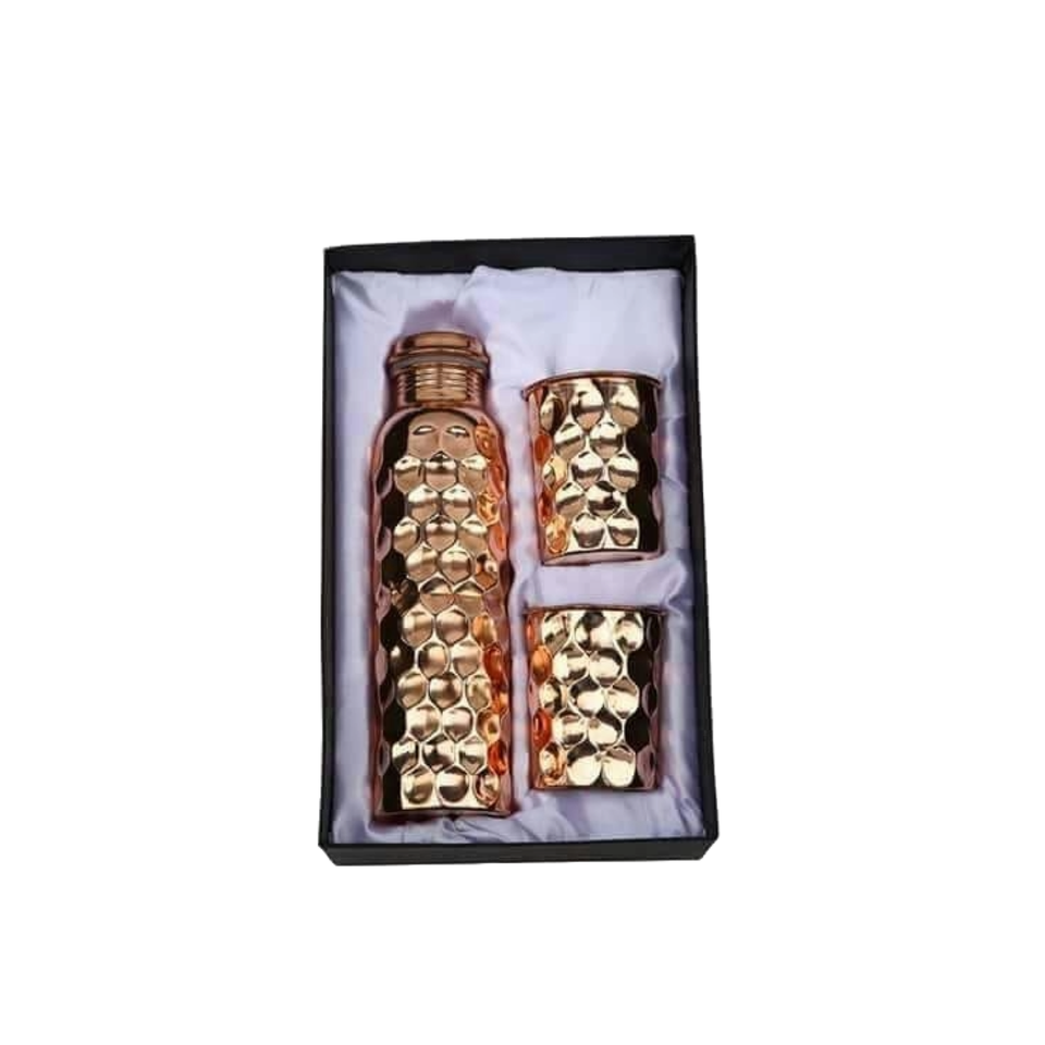 Modern Design Antique Copper Bottle Handmade Metal Drinkware in Glass Box Regular Size for Healthy Water Consumption