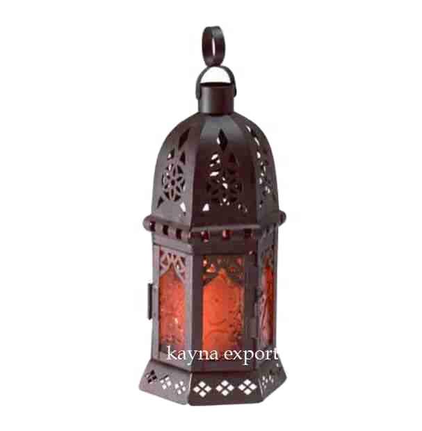 Modern Design Arabian Style Color Full Glass Lantern New Handmade Latest Design Black Lantern for Lighting Decoration for Home