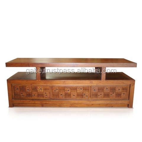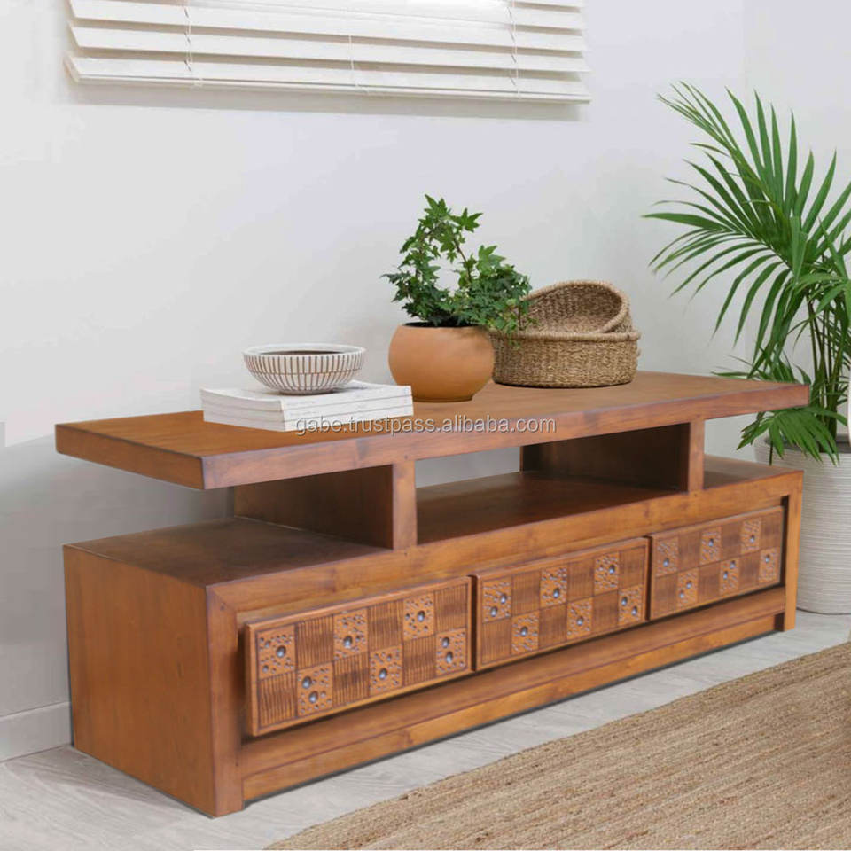 Product name:Artisanal Teakwood Carved Drawer TV Console in Natural Finish