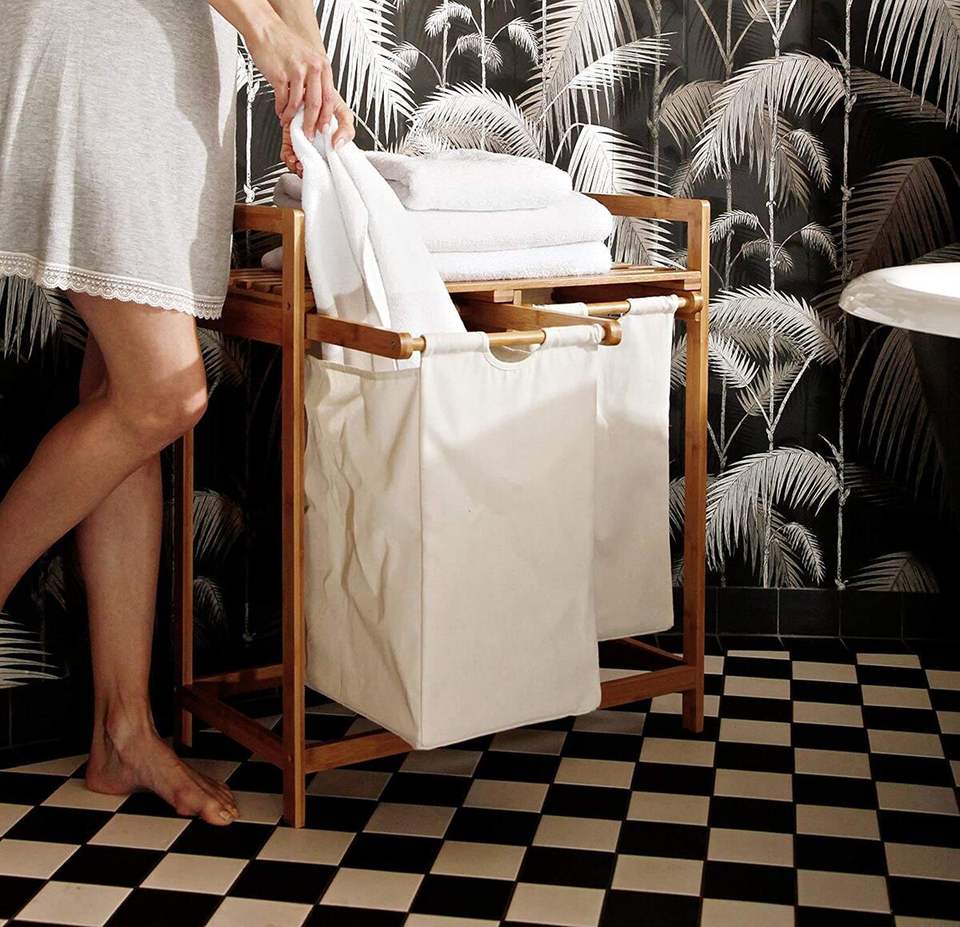 Description:Bamboo Laundry Hamper and Shelf