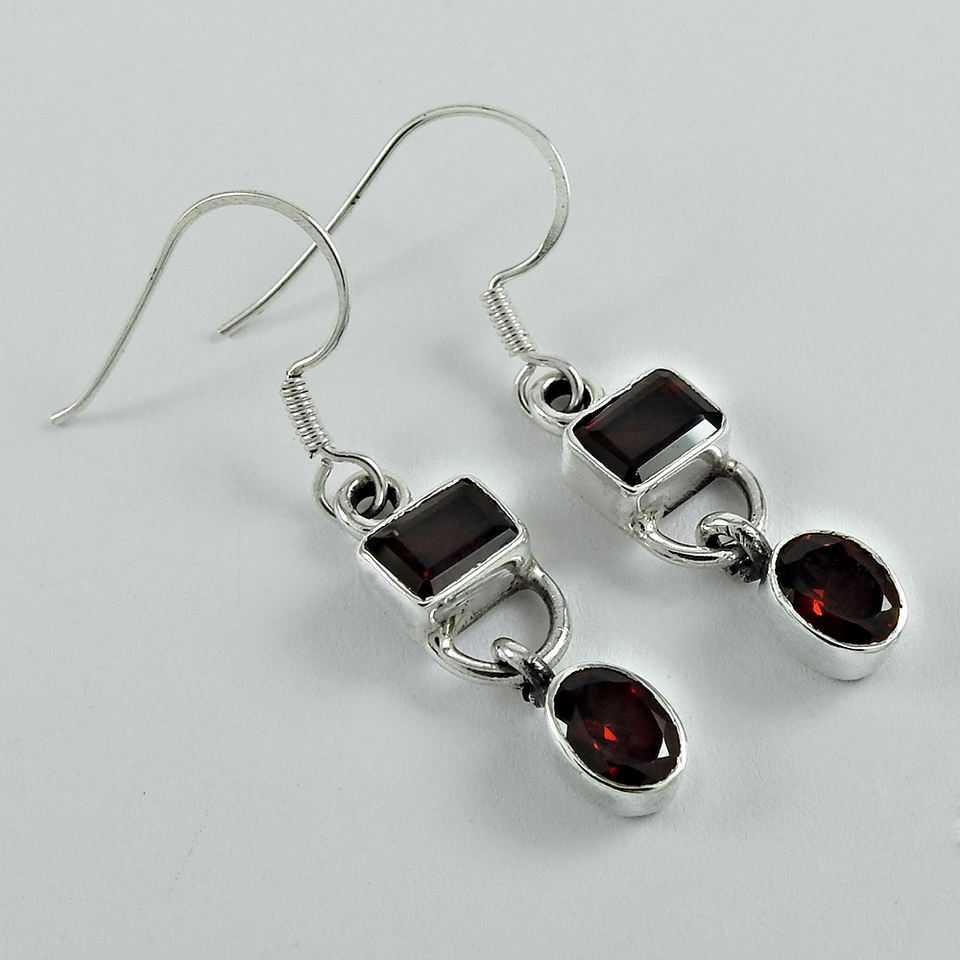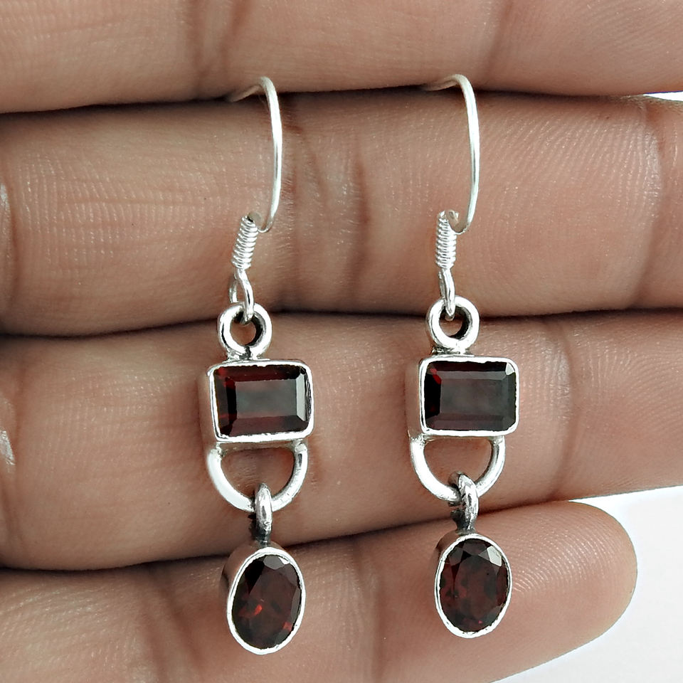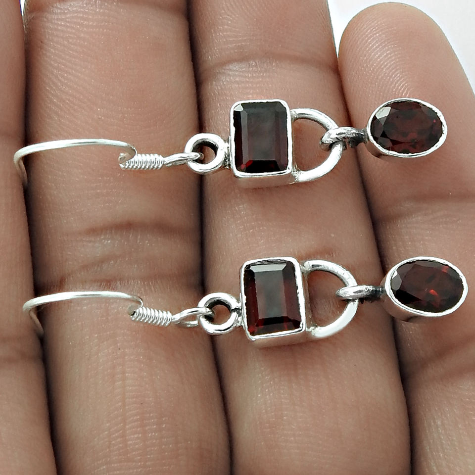 Modern Design Best Quality Handmade Jewelry 925 Sterling Silver Natural Red Garnet Gemstone Classic Design Earrings for Woman