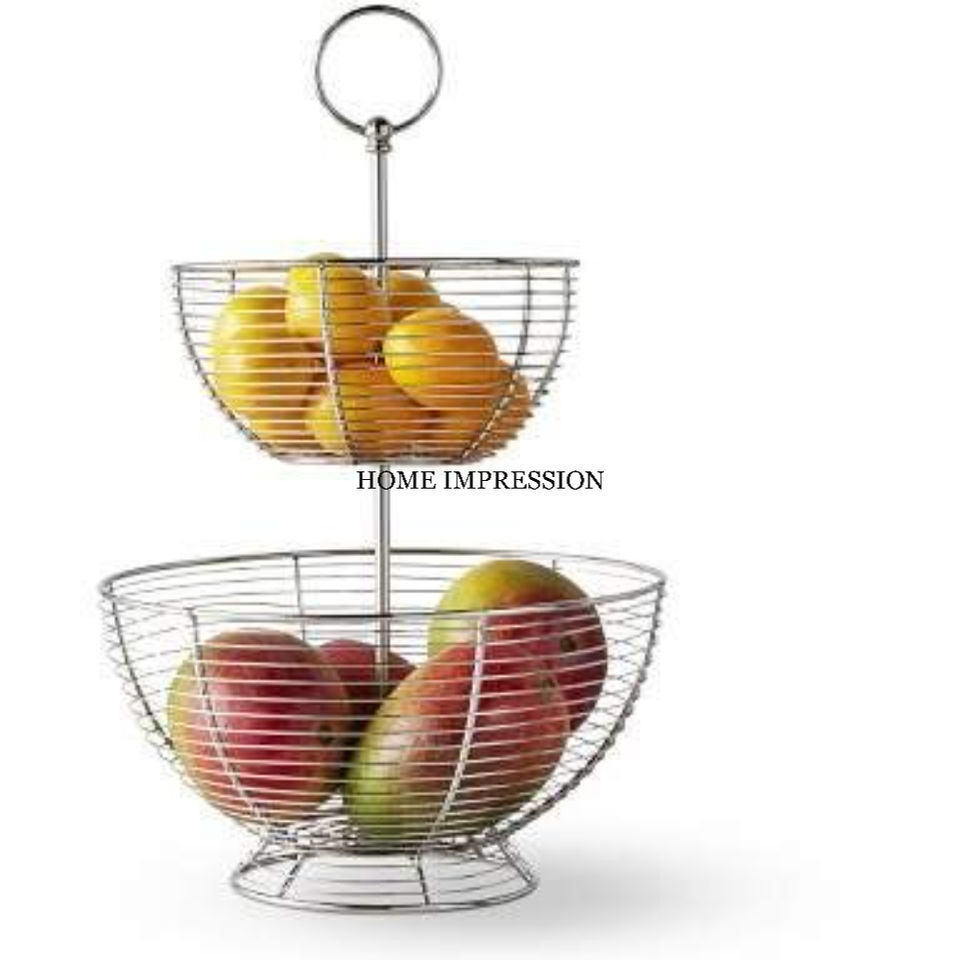 Modern Design Best Quality Unique Style Metal Silver Color Finishing Iron Wire Fruit Basket In Lowest Price From Indian Exporter