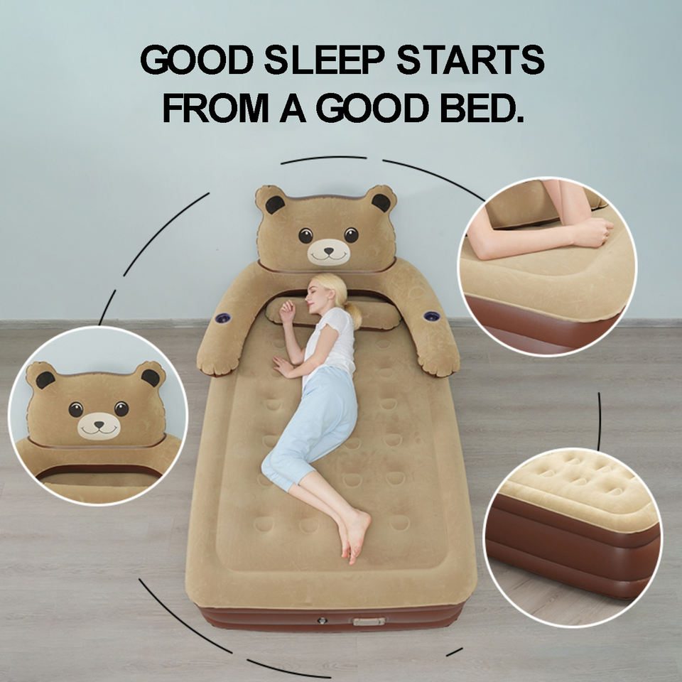Modern Design Brown Bear Lightweight Self-Inflating Airbed Portable Inflatable Air Mattress Automatic Built-in Pump Air Mattress