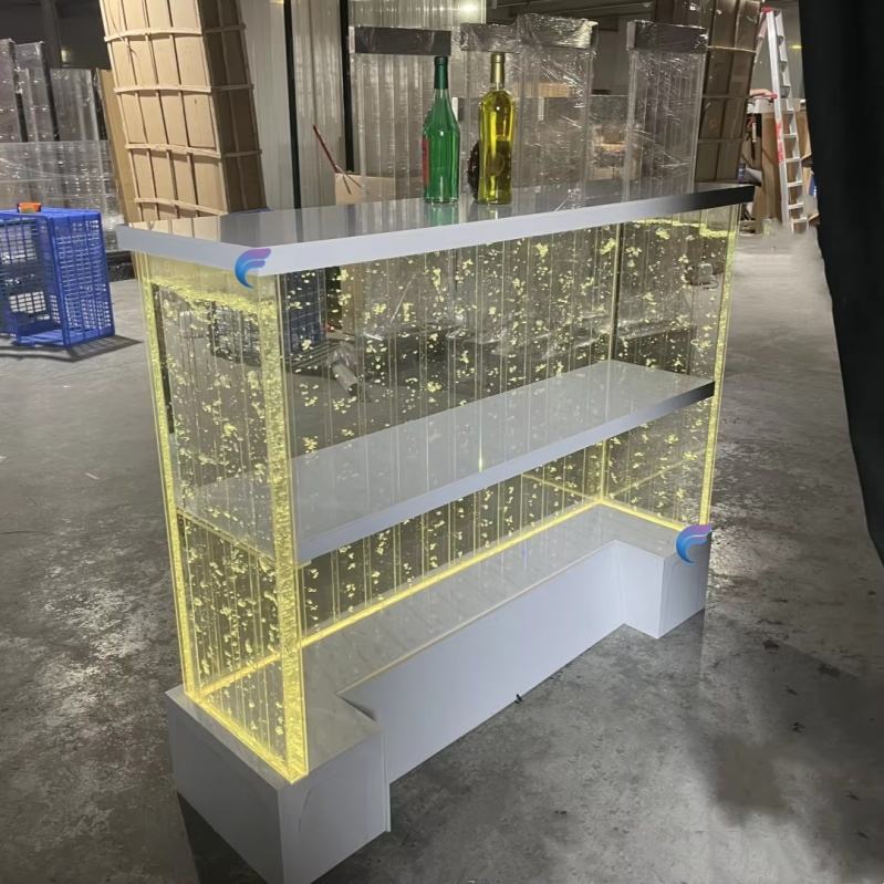 Modern Design Commercial Night Club Furniture Counter Light up LED Color Changing Aquarium Wine Bar Plastic Factory Direct Price