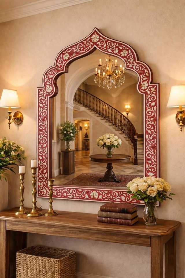 Modern Design Customized Bone Inlay Eco-Friendly Handmade Wall Decorative Mirror Frame for Full Bathroom Vanity Mirror India