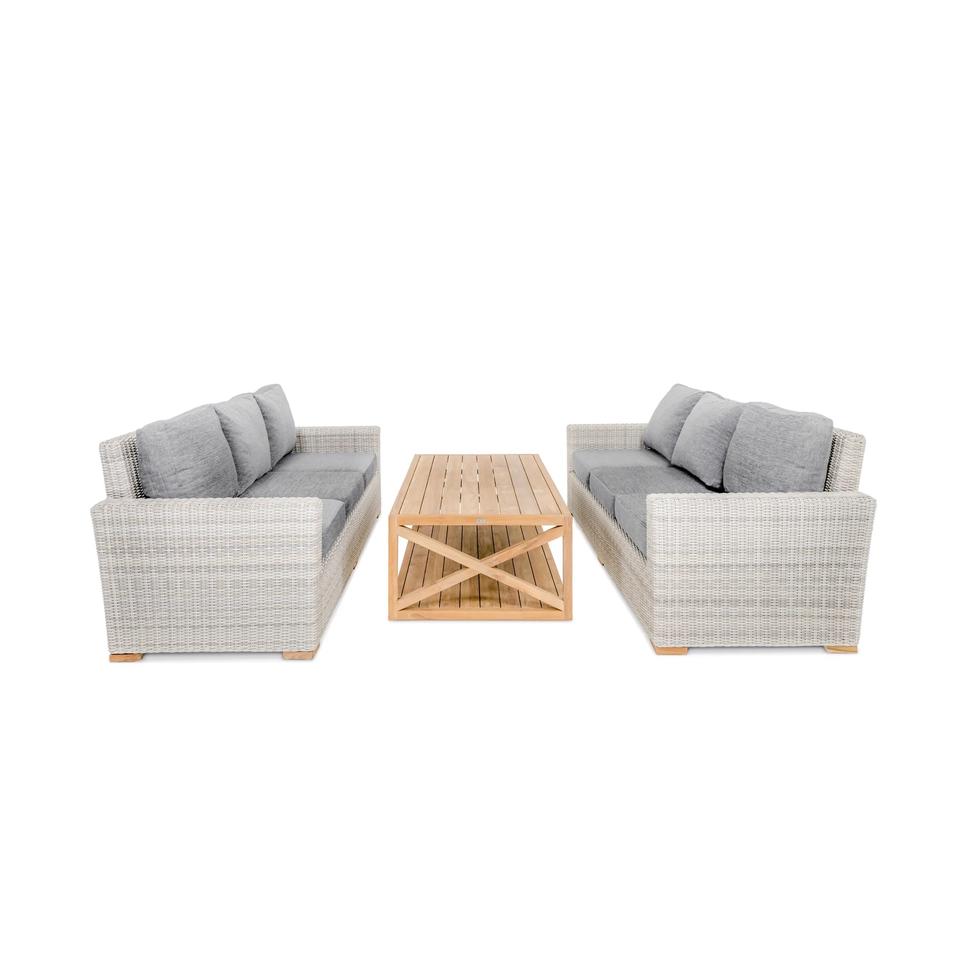 Modern Design Garden Sofa Set Solid Teak Wood Frame with Woven Synthetic Rattan Cushion for Indoor & Outdoor Use