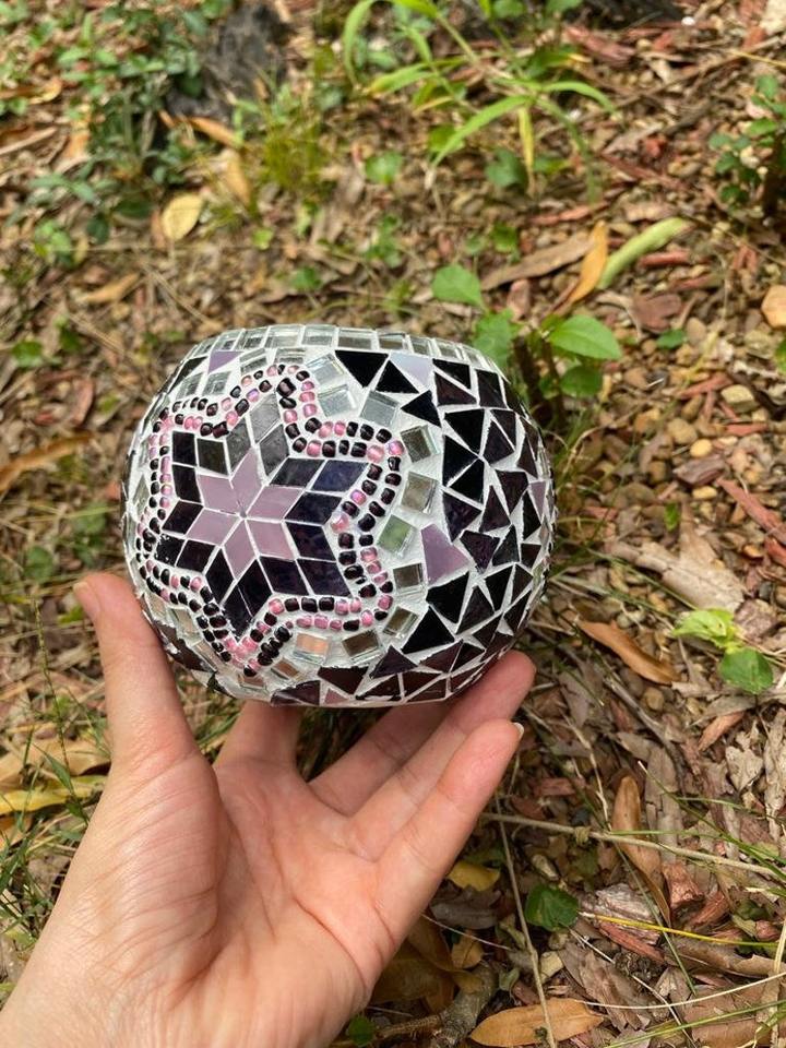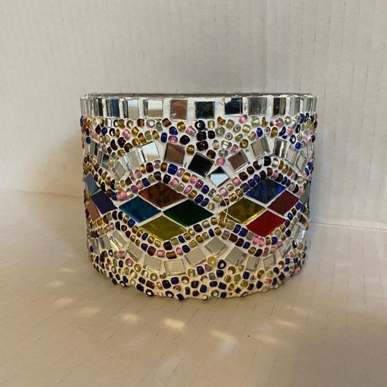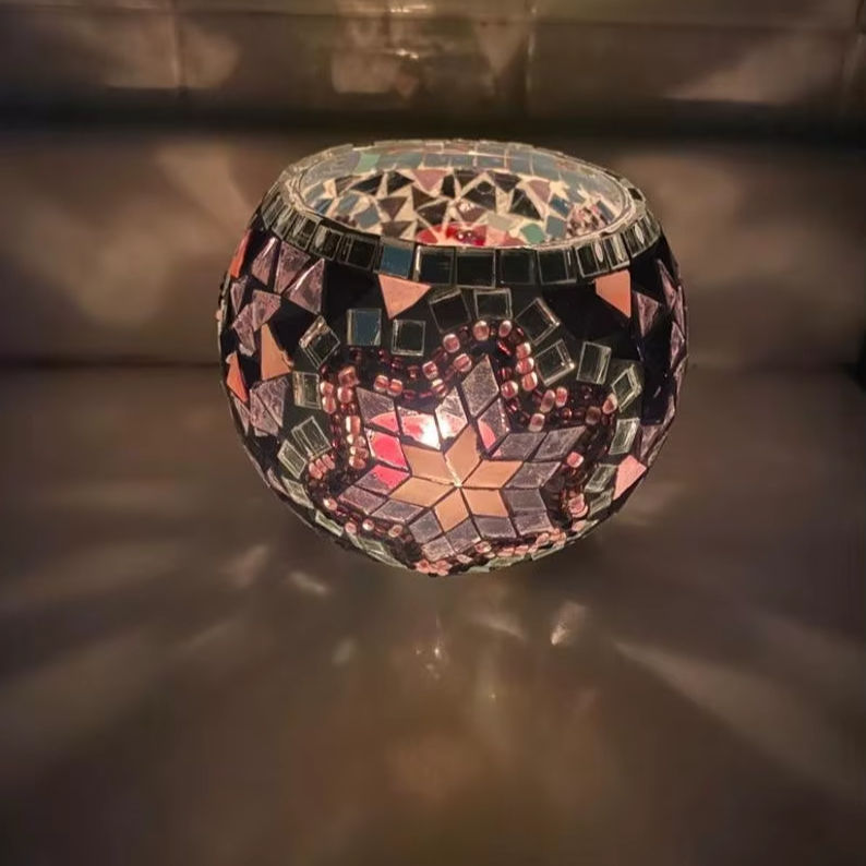 Modern Design Glass Votive Set of 2 Black & Silver Mosaic Medium Size Candle Votive Holder for Living Room & Hotel Decor