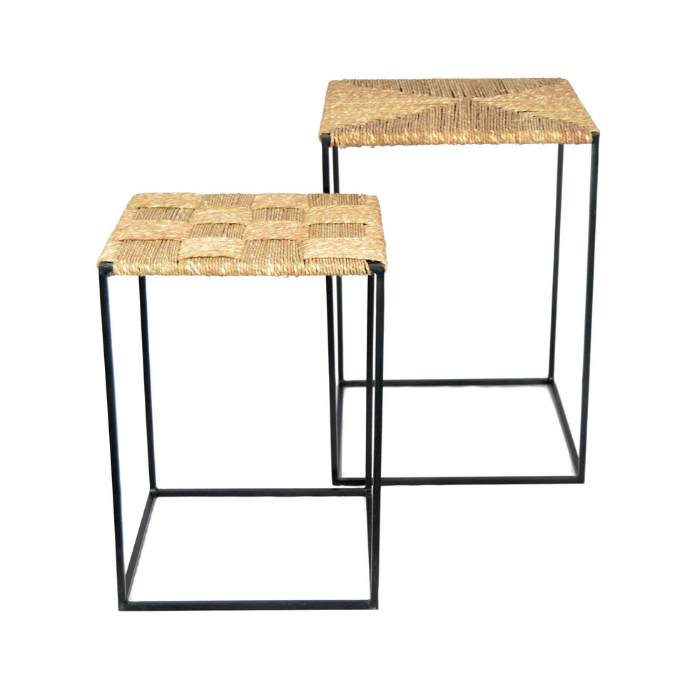 Modern Design Hand Woven Side Table Black Metal Iron Frame for Home Hotel Restaurant Office Set of 2 for Living Room table