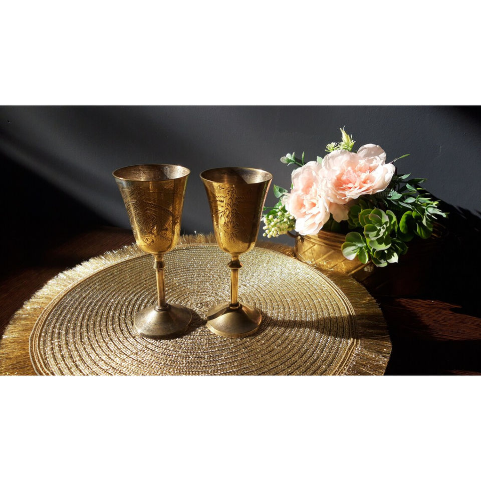 Modern Design Handmade Gold Engraved Brass Goblet Wine Champagne Whiskey Glass Perfect for Wine Serving and Special Occasions