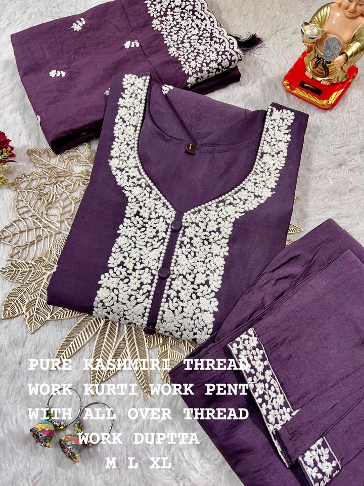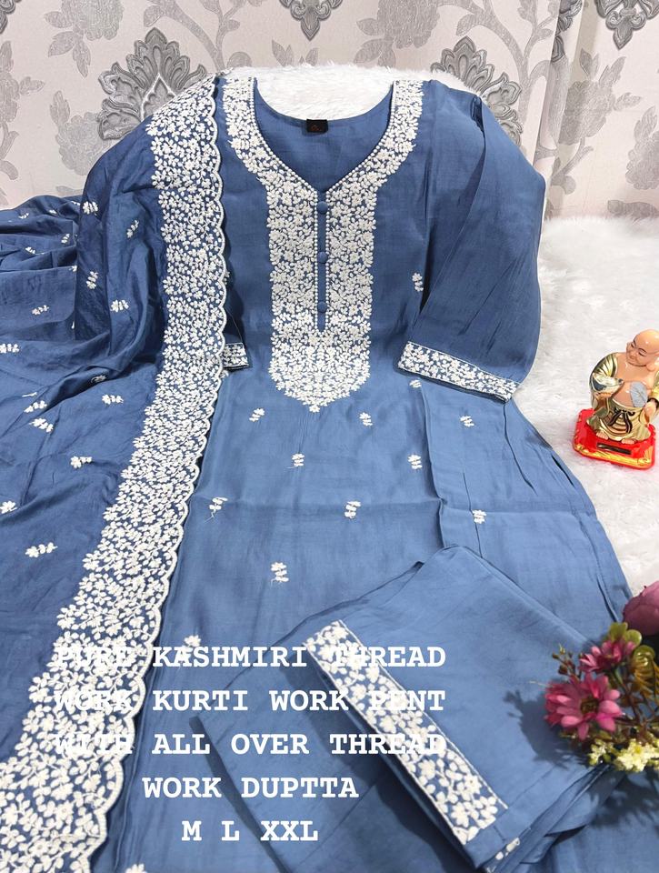 Exclusive Muslin With Heavy Embroidery Work Kurti Pant And Dupatta