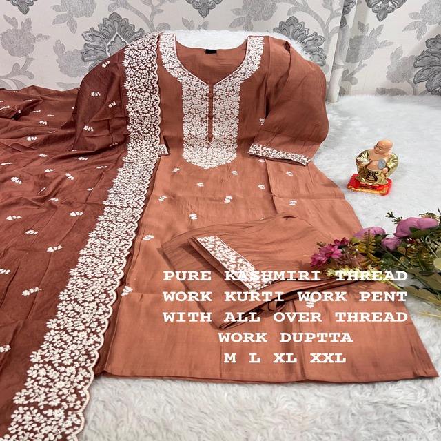 Product Name:Exclusive Muslin With Heavy Embroidery Work Kurti Pant And Dupatta
