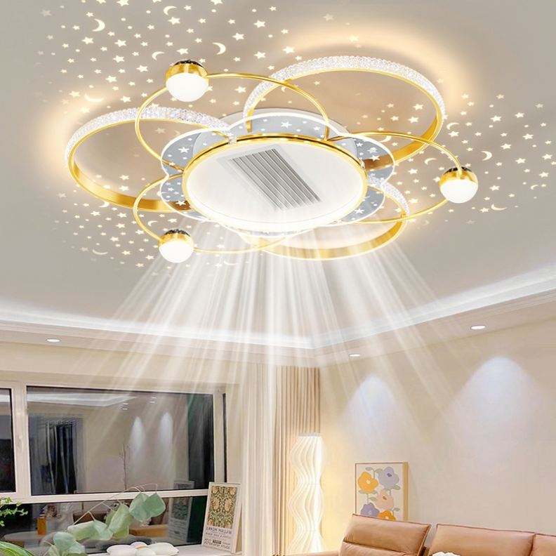 Modern Design Iron Bladeless ABS LED Light Ceiling Fan Full Spectrum Star Projection DC Remote Control for Living Room Bedroom