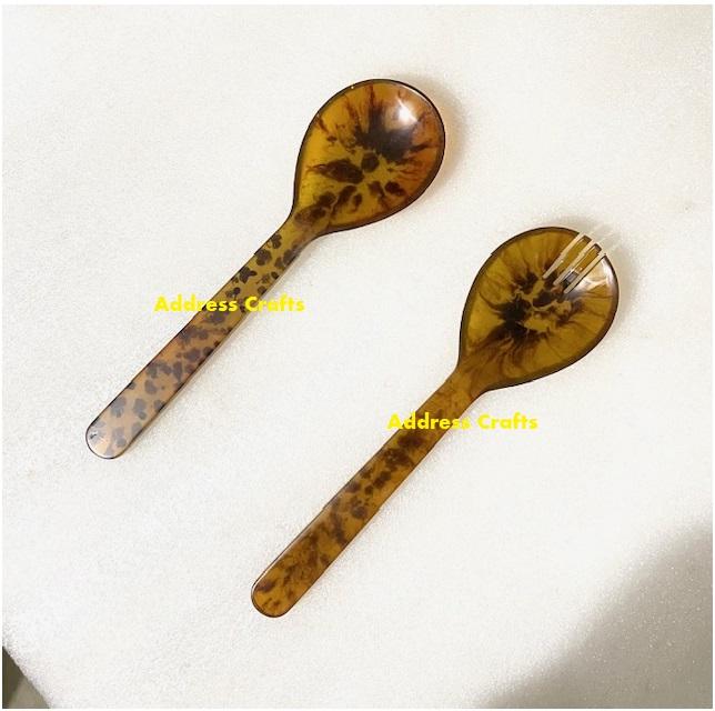 Modern Design Leopard Color Resin Food Grade Salad Tools Custom Salad Server Set for Home Hotel Kitchenware Resin Salad Spoon