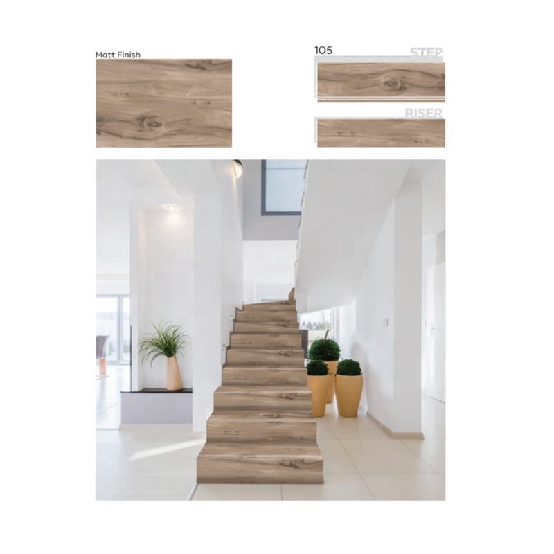 Modern Design Matt Finish Wooden Style Anti-Slip Porcelain Step Riser Tiles 300x900/900x200 11mm Thickness for Interior Stairs