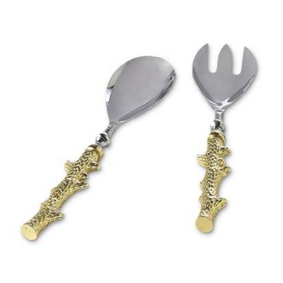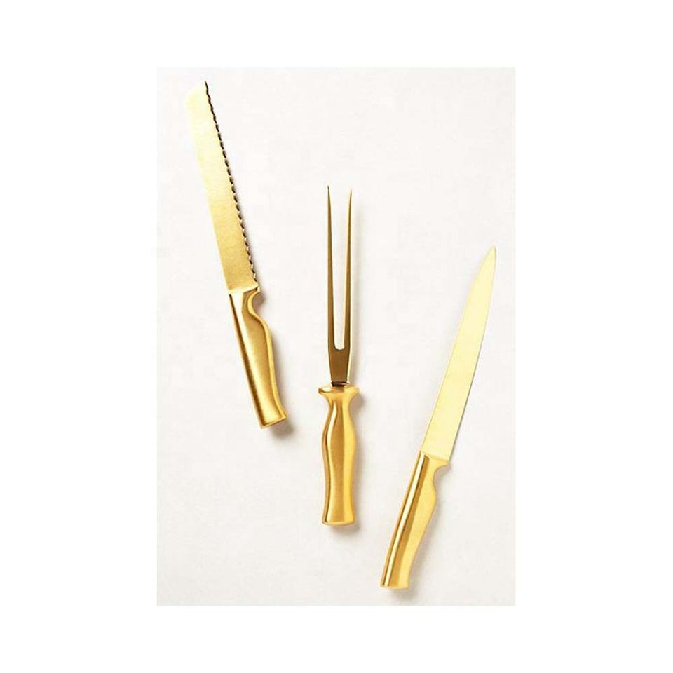 Modern Design Of Gold Spoon & Fork for Fruit Salad Soup serving set metal decorative Rice/Soup servers White Enamel Metal Handle