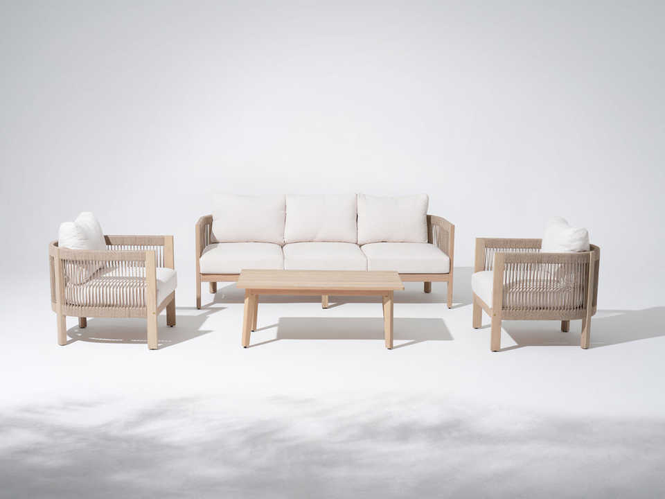 Modern Design Outdoor Sectional Sofa Set with Teak Wood Frame, Rope Weaving, and Plush Cushions for Resort and Garden Lounges