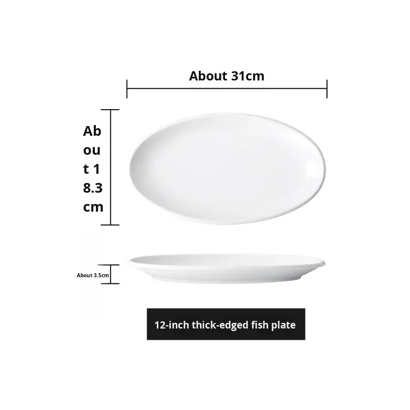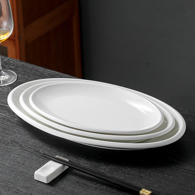 Modern Design Pure White Ceramic Fish Plate Large Size Oval Thick Edge Disposable for Home Use Hotels Parties Tableware