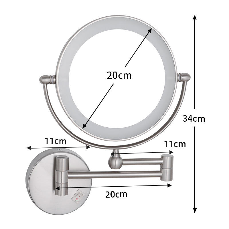 Modern Design Retractable Wall-Mounted Beauty Makeup Mirror 3x Magnification LED Light Dressing Mirror Glass Material