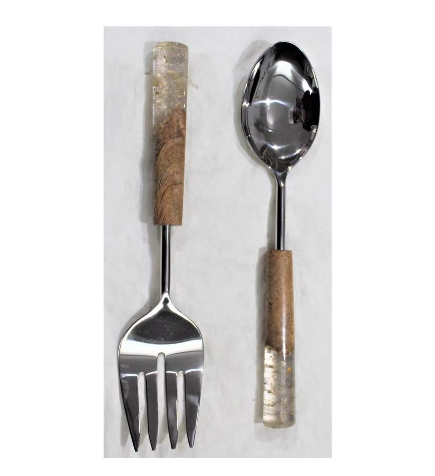 Modern Design Salad Server Set Wooden Resin Handle with Copper Plated Salad Server Serving Spoon Fork Tool Set