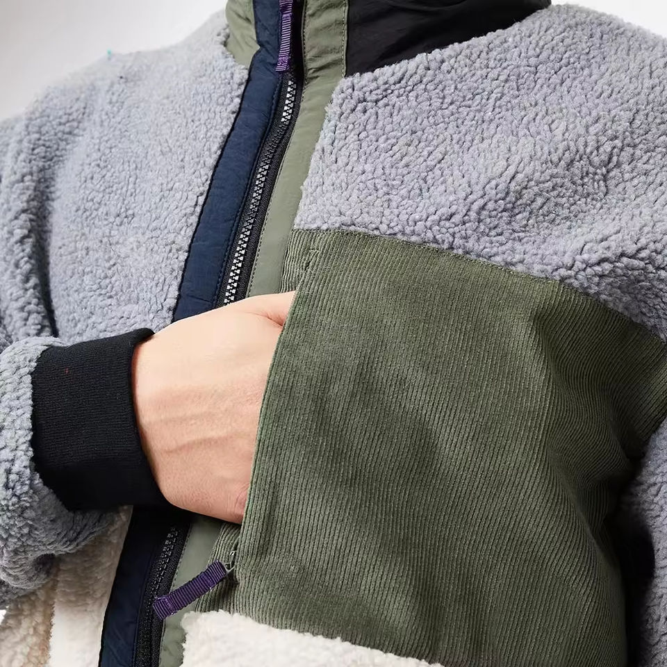 Modern Design Sherpa Fleece Canvas Jacket Men Thermal Interior Stand Waterproof Breathable Winter Casual Style Hiking Trips