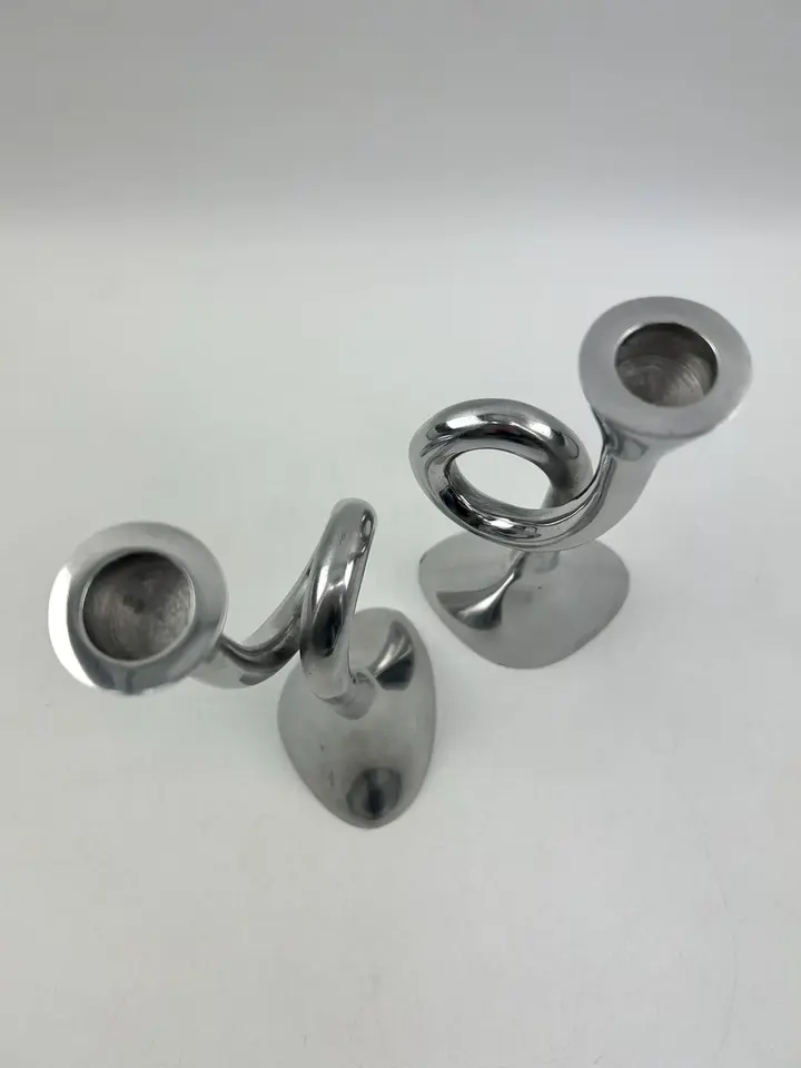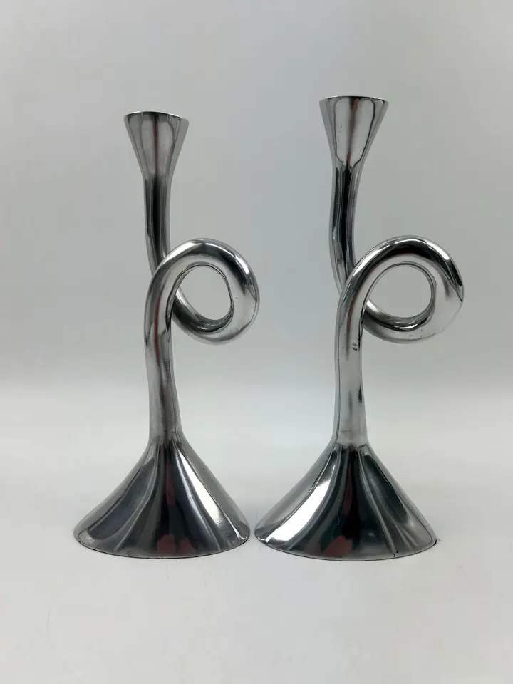 Modern Design Spiral Aluminum Candlestick Holders Pair Home Decor Postmodern Style Knotted Metal Candle Holders Set of Two