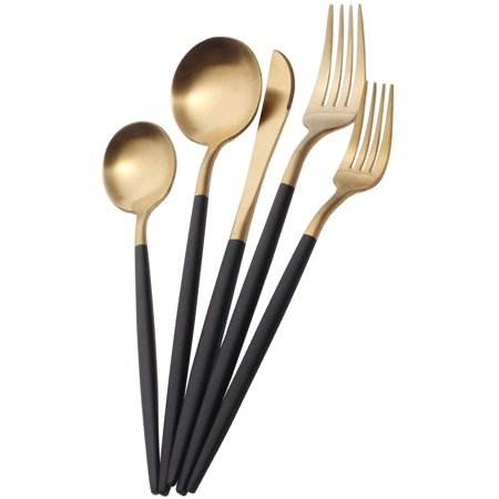 Modern Design Stainless Steel Plated Cutlery Set with Black Enamel Slim Long Handle for Wedding Party Flatware Sets