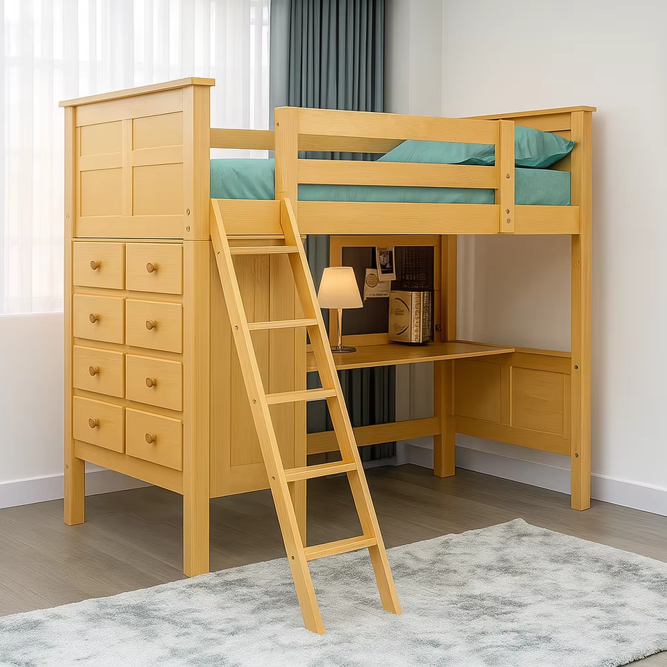 Valencia Twin Loft Bed with Dressers Modern Design Solid New Zealand Pine Wood Handmade Vietnam P.D.T 1 Year Warranty Best Price