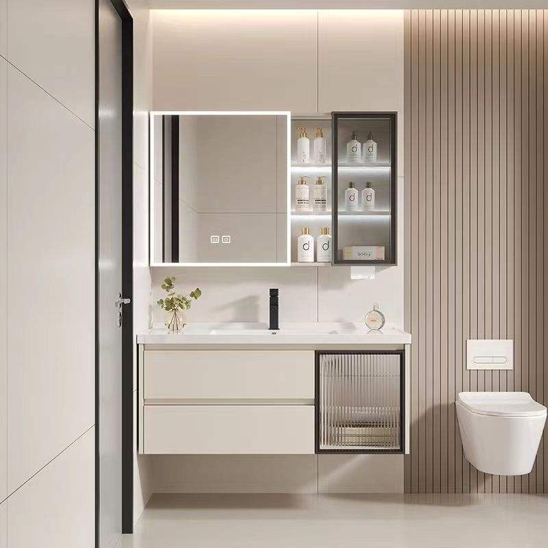 Modern Design Wall-Mounted Floating Vanity Bathroom Cabinet High Quality LED Lighted Smart Mirror Customizable Hotels Apartments