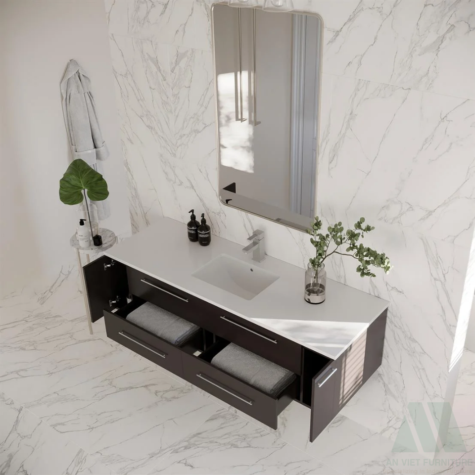 Modern Design Wall-mounted Wooden Bathroom Vanities 4 Drawers 2 Side Cabinets Functional and Stylish with Sinks