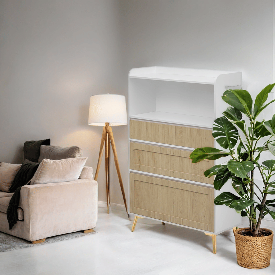 Modern Design White Solid Wood Three Drawer Storage Cabinet for Bedroom Dining Room Kitchen Clothes Storage
