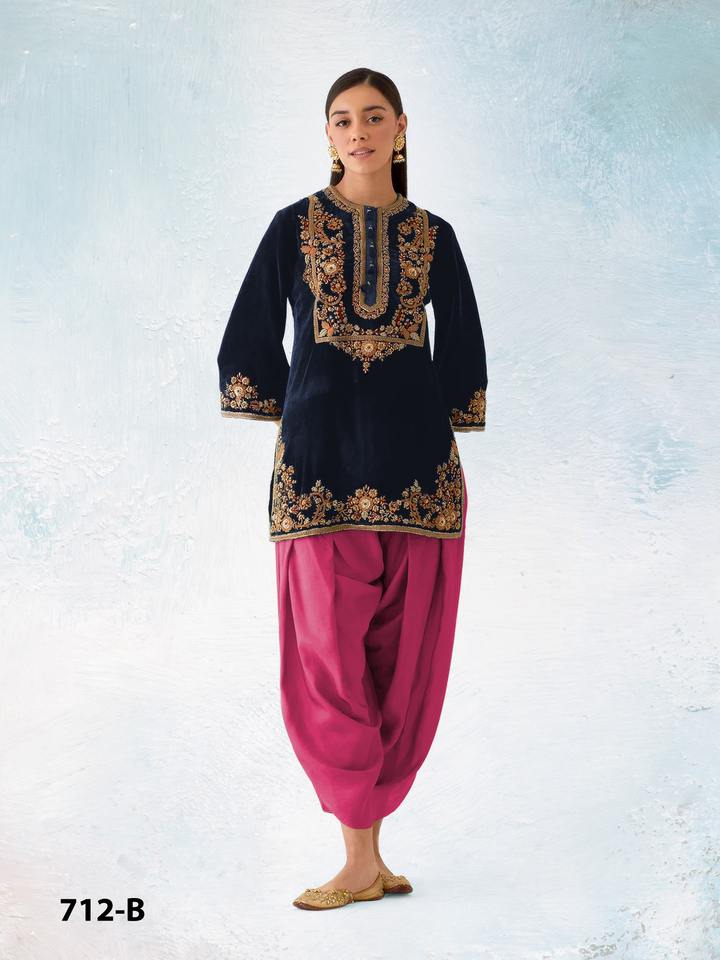 Modern Design Woman Velvet Salwar Kameez Suits with Heavy Embroidery and Chinon Dupatta Ideal for Wedding Party and Gift Purpose