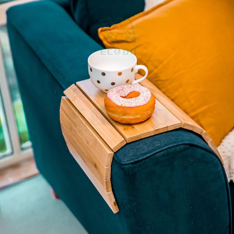 Modern Design Wood Table for Couch Arm Natural Bamboo Sofa Snack Tray for Eating