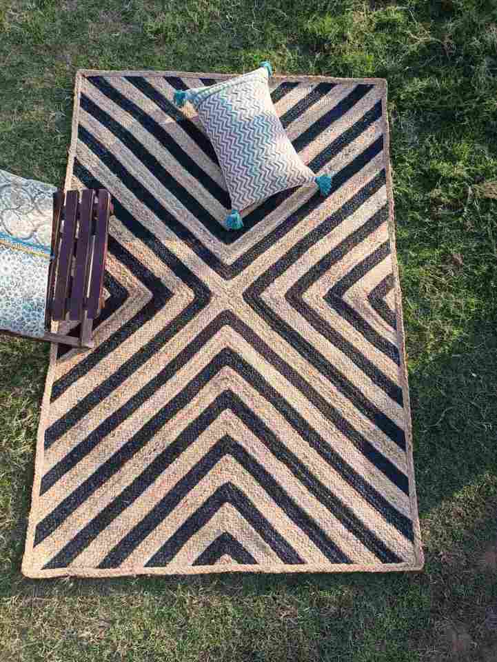 Modern Designer Black Color Stripes Pattern Carpet 100% Cotton New Home Decor and Car Use