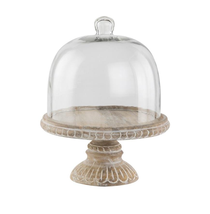 Modern Designer Handmade Eco-Friendly Wedding Decor Table Top Wooden Cake Platter Stand with Glass Top