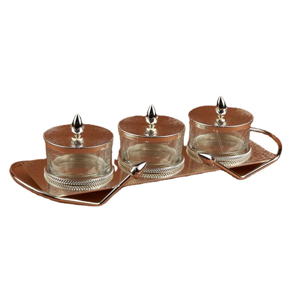 Modern Designer Metal Bowl with Gold Elegant Lid Bulk Serving Tray for Party Decor Home Tabletop for Candy Nuts Serving