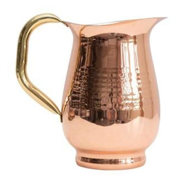 Modern Designer Metal Pitcher with Brass Casted Handle Large Storage Space Glass Water Kettle for Drinks and Juice