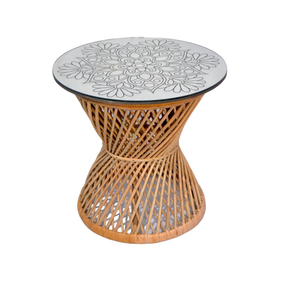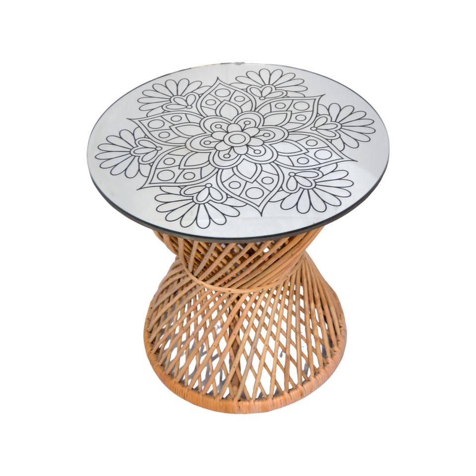 Rattan & Glass Side Table