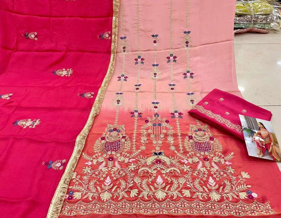 Modern Designer Unstitched Hand Embroidered Shimmer Silk Indian Fashion-Forward Suits for Women Sun Protection Elegant
