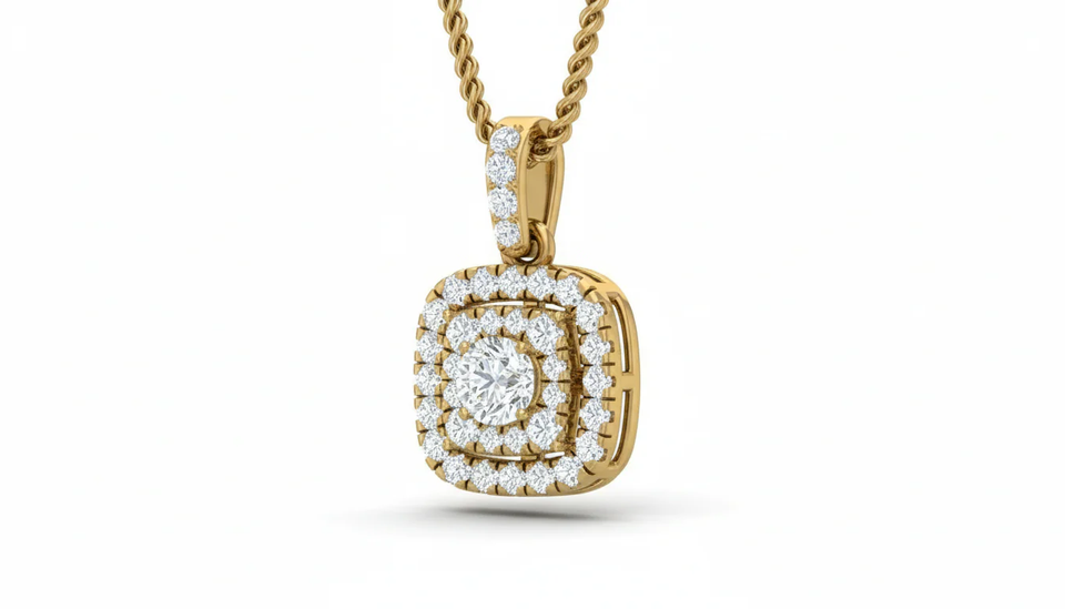 Modern Diamond Double Halo Square Pendant 18K Gold with Real Diamonds Women Luxury Fine Jewelry Unique Gift for Anniversary