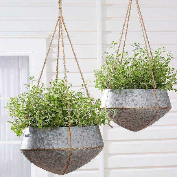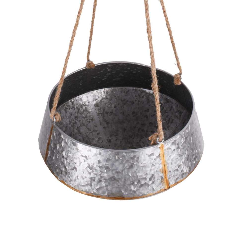 Modern Diamond Galvanized Metal Hanging Planter Rustic Silver Flower Pot Holder For Wall Balcony IndoorOutdoor Home Garden Decor