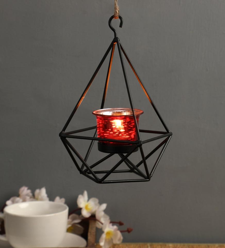 Modern Diamond-shaped Metal Glass Lantern for Home Craft Decor for Easter Tabletop Ornament or Indoor Art Arrangements