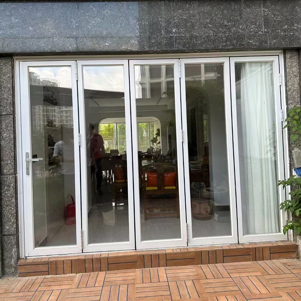 Modern Double Folding Patio Aluminum Alloy Grill Pattern Sliding Open Feature Exterior Accordion Glass Courtyards Waterproof