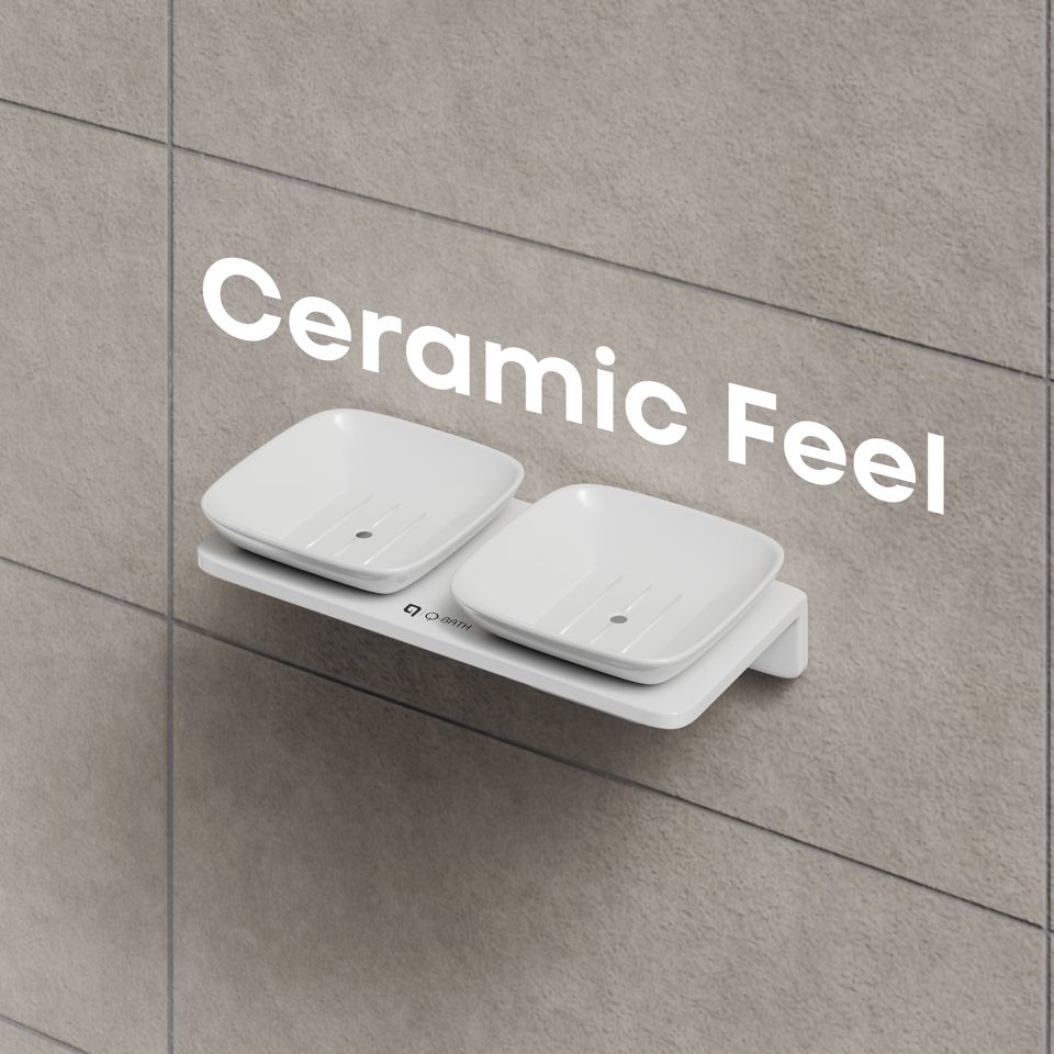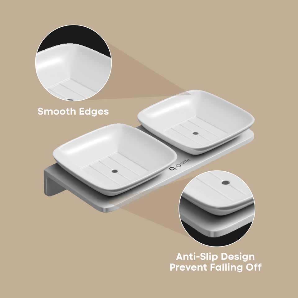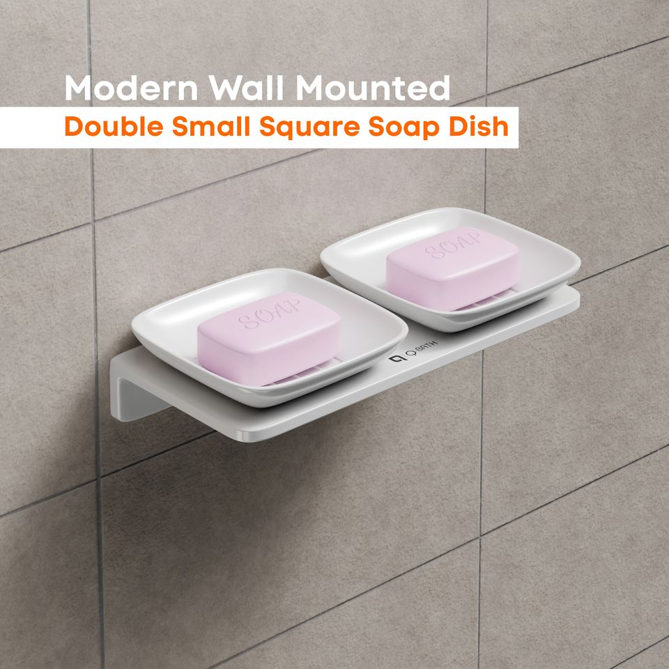Modern Double Small Square Soap Dish Adhesive Wall Mount Soap Saver with Drainage Holes for Bathroom Vanity and Kitchen Sink