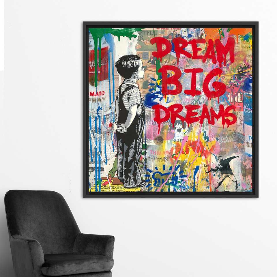 Modern Dream Big Graffiti Canvas Print - Elegant Living Room Wall Art,Black Framed