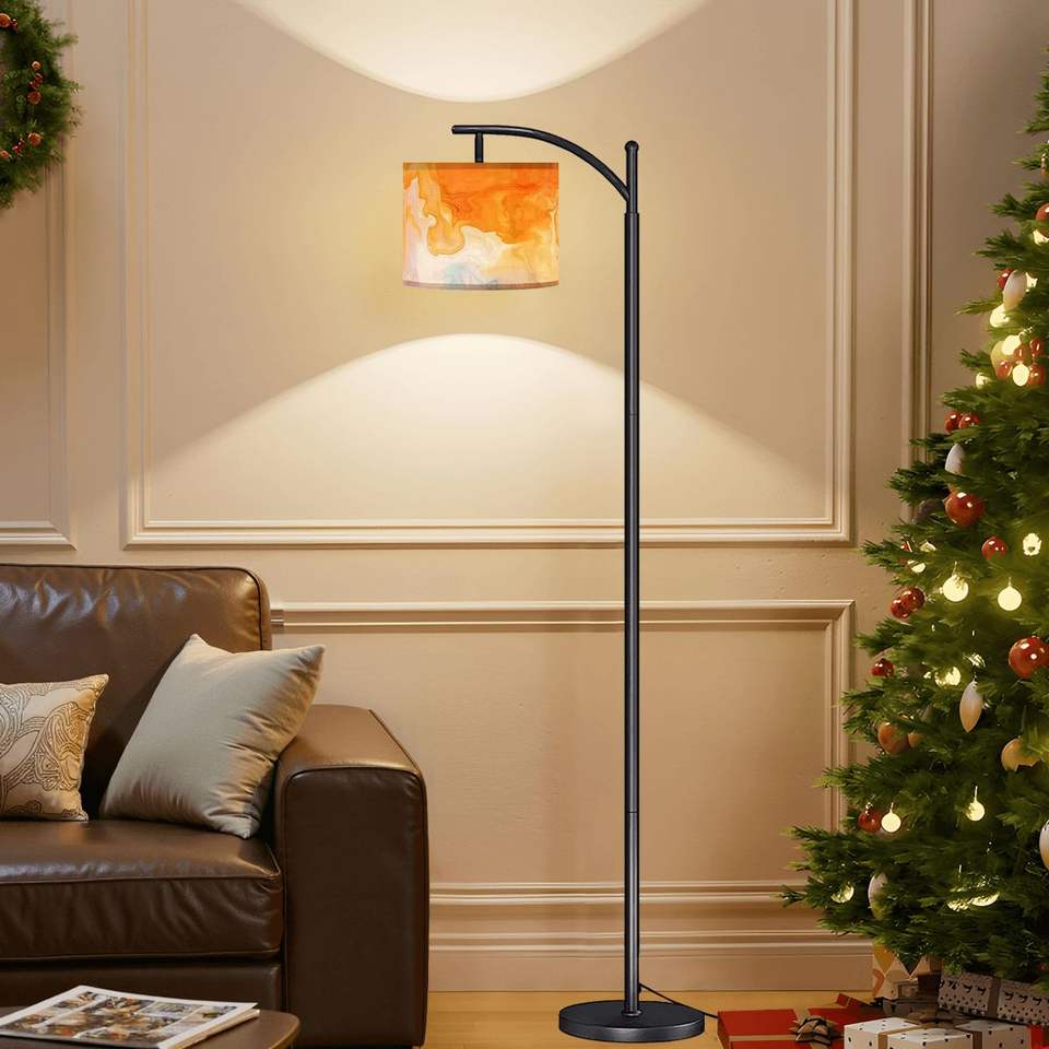 Custom image Modern Drum Style Arc Floor Lamp LED Light Made USA for Living Room Bedroom Hotel Decor Durable Brass Iron Fabric/Metal/Wood