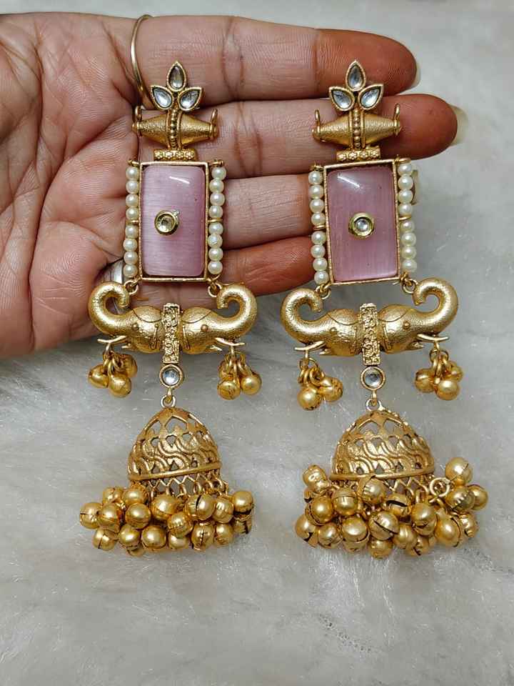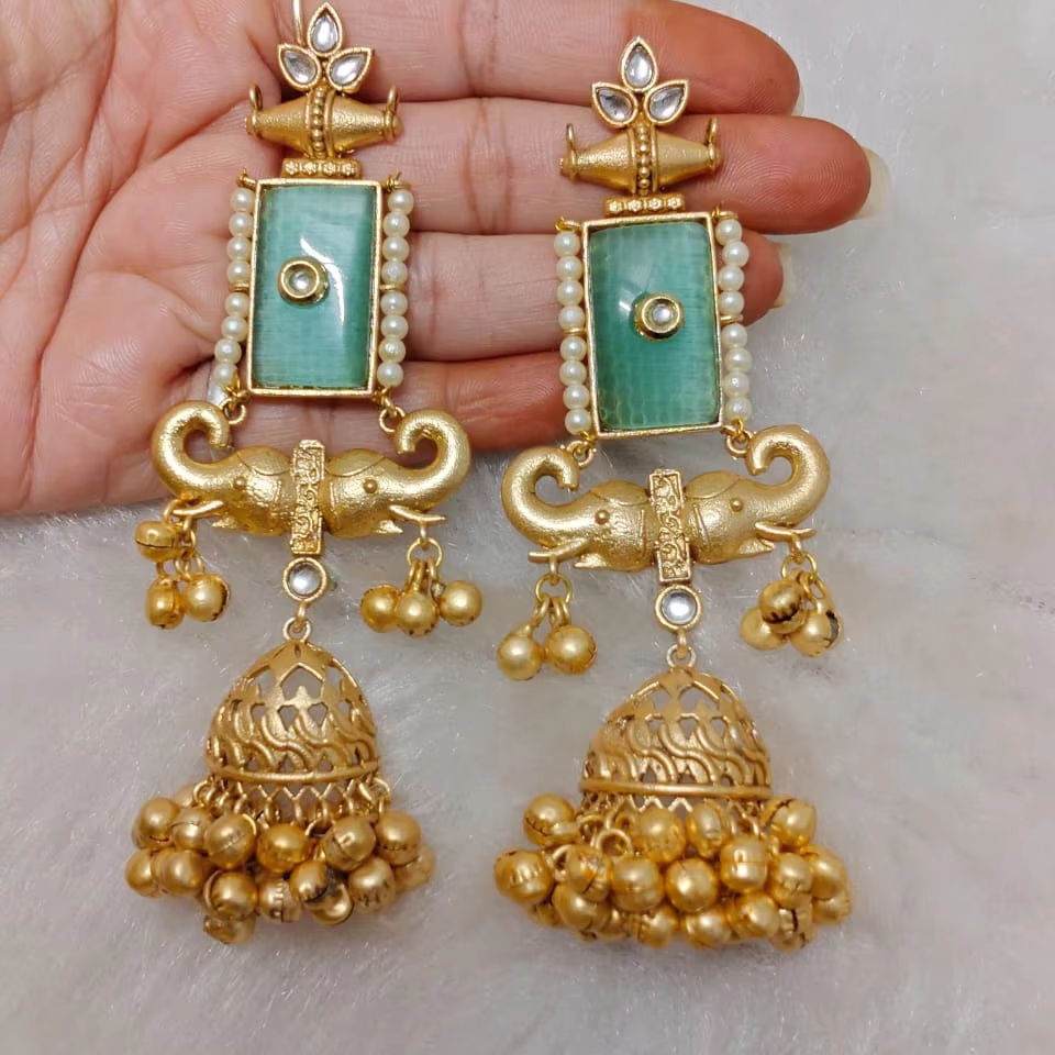 Modern Earrings & Studs Jhumka Earrings Green Gold for women and girls Bali Earrings For Women