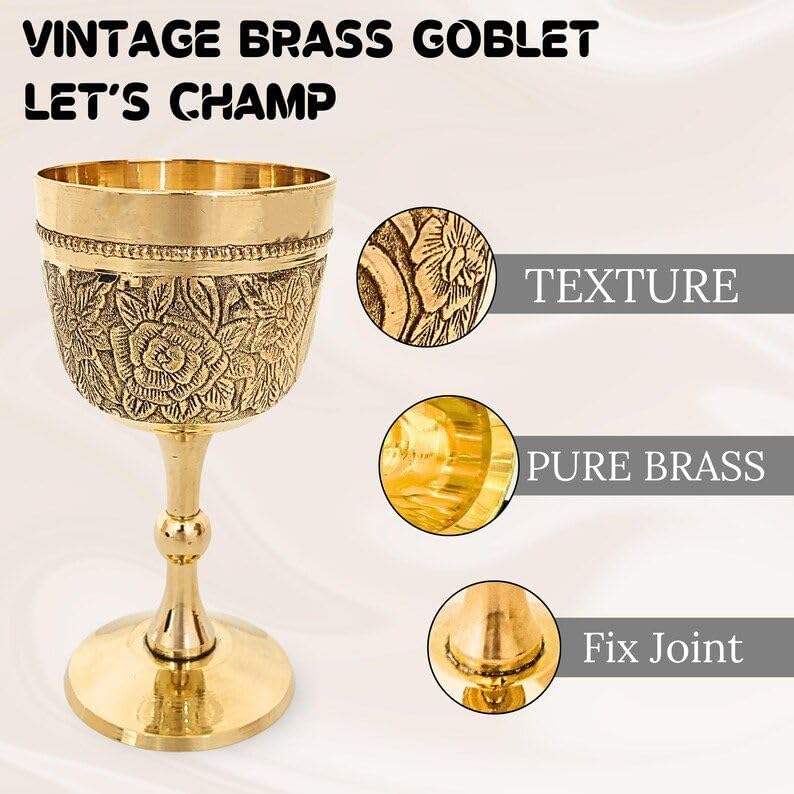 Modern Eco-Friendly Brass Goblet Set Gold Floral Engraved Chalice Cups for Wine Weddings & Home Decor