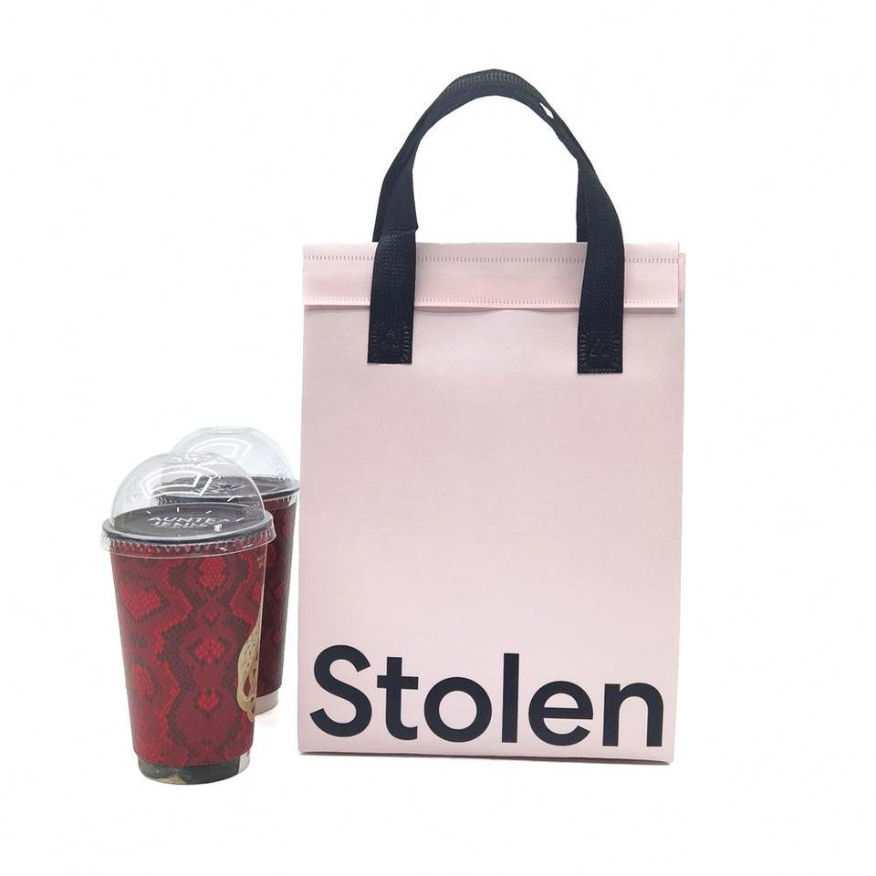 Modern Eco-Friendly Insulated Waterproof Foldable Takeout Food Wine Delivery Bag Non-Woven Lined Stylish Reusable Recyclable