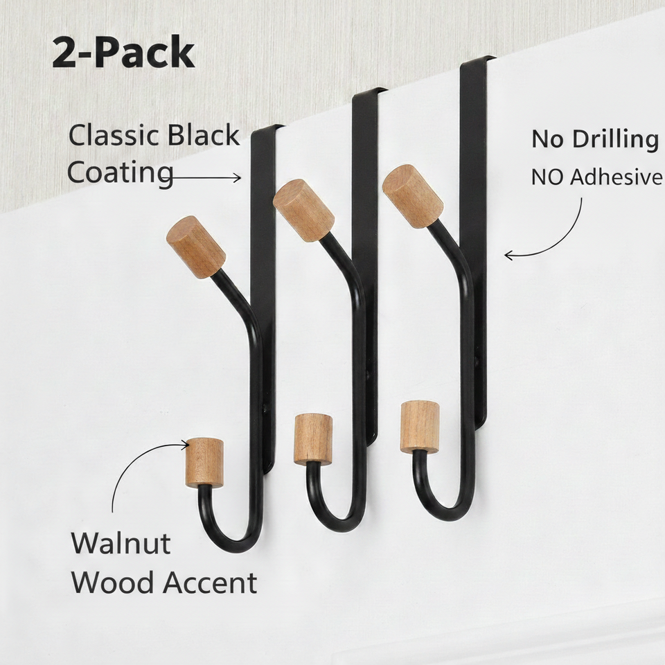 Modern Eco-Friendly Metal Multifunction Overdoor Hook Set for Coats and Accessories Two Hooks Per Set