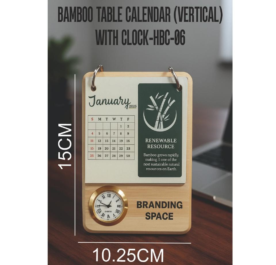 Modern Eco-Friendly UV Printed Engraved Bamboo Display Handicraft Calendar and Clock for Desktop Home Office Decorations